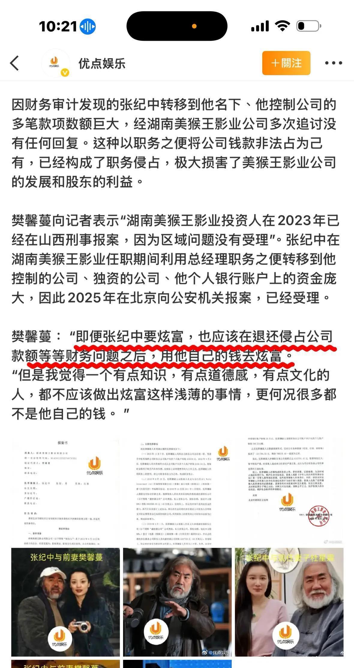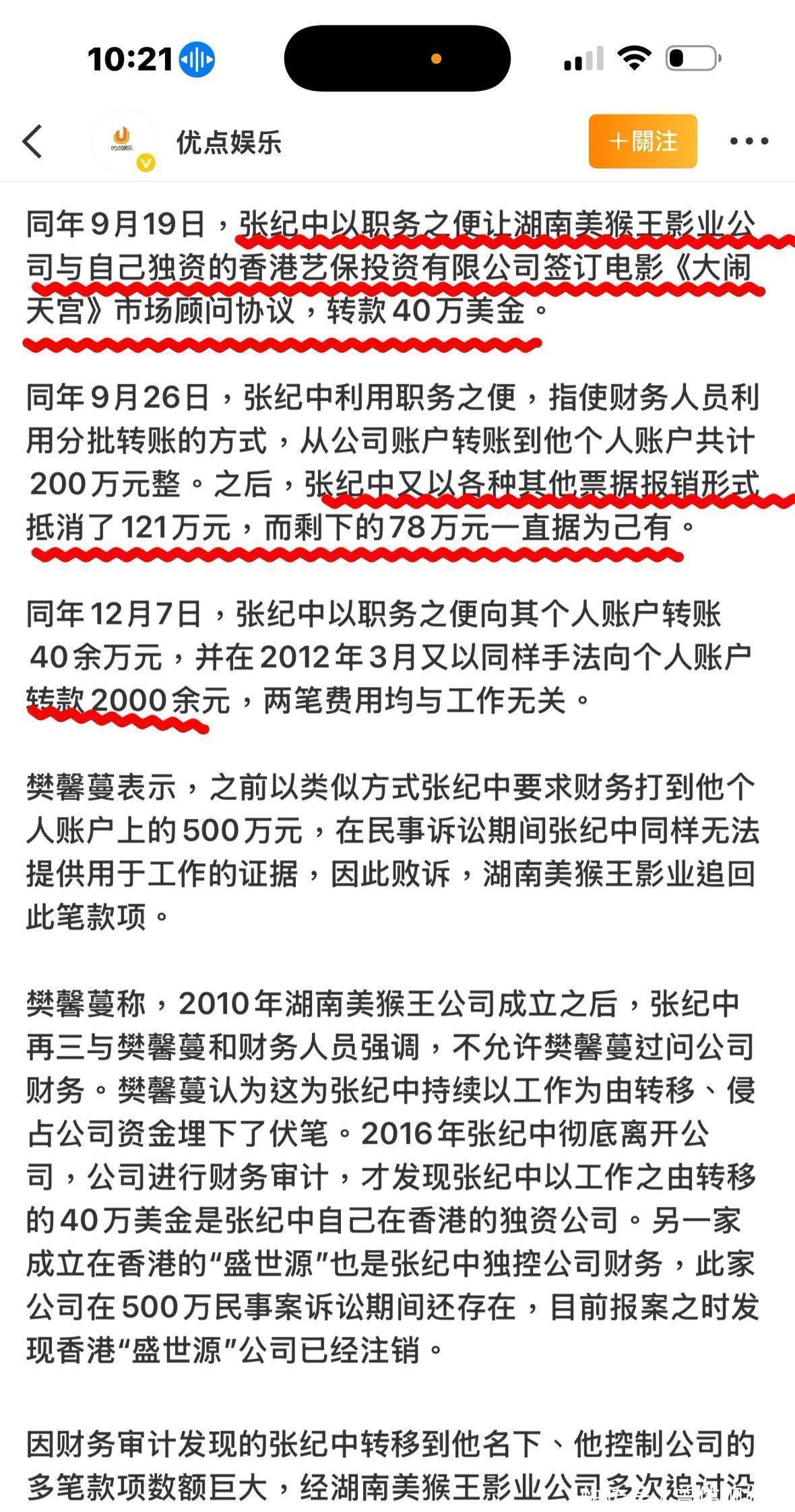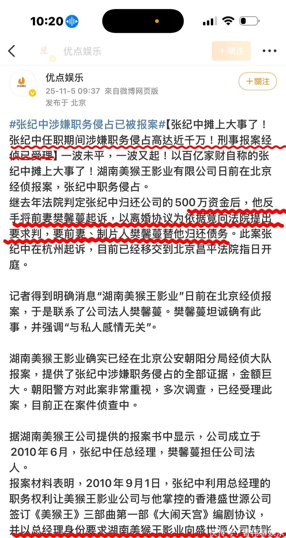 前妻甩报案单实锤:从2000块到65万美金,钱全往自己口袋转11月5日,湖南美猴王影业直接晒出报案书,把张纪中当年的操作扒得明明白白。这家2010年成立的公司,樊馨蔓是法人,张纪中当总经理,本该是夫妻搭档干事业,没想到成了他的“提款机”。